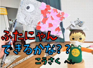 ふたにゃんと一緒に新聞紙を使っていろいろ